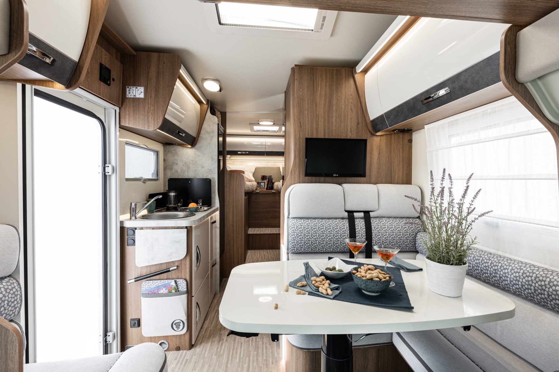 הקרוואן כולל מיטה זוגית מעל תא הנהג, שתי מיטות יחיד אחוריות הניתנות להפיכה למיטה זוגית גדולה, פינת אוכל ההופכת למיטת ילד, מטבח, מקלחת ושירותים.