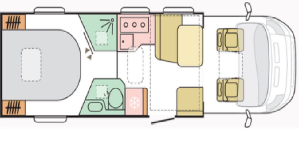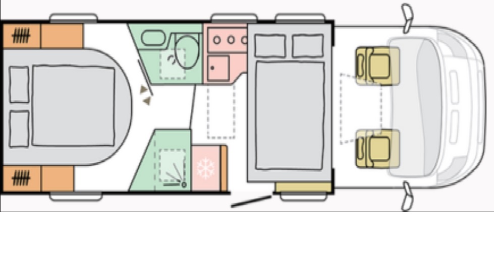 קרוואן זה מסדרת "משולב חלקית" המתאים לעד 2 מבוגרים ו- 2 ילדים. כולל מיטות זוגית אמצעית בחלק האחורי של הקרוואן, מיטה זוגית ל-2 ילדים היורדת מעל פינת האוכל, פינת אוכל, מטבח, מקלחת ושירותים.