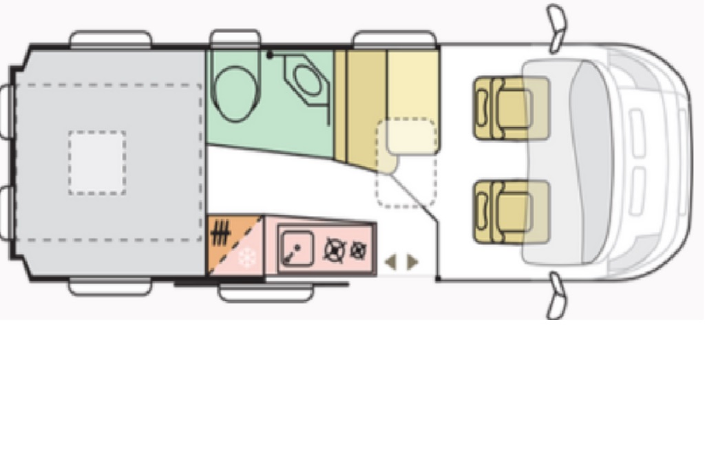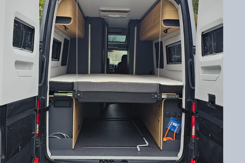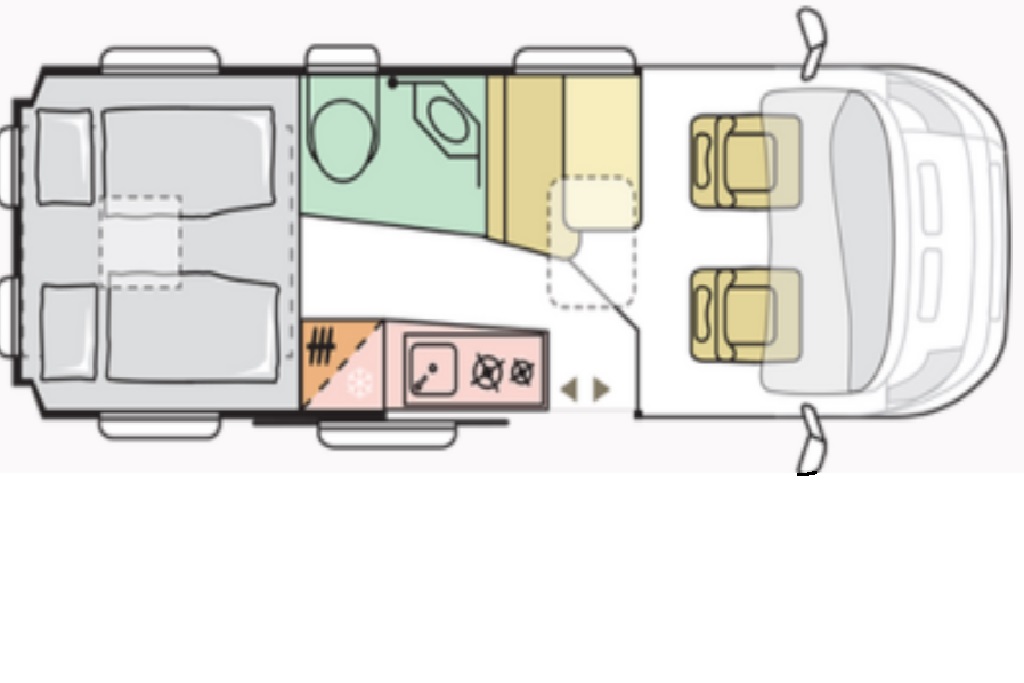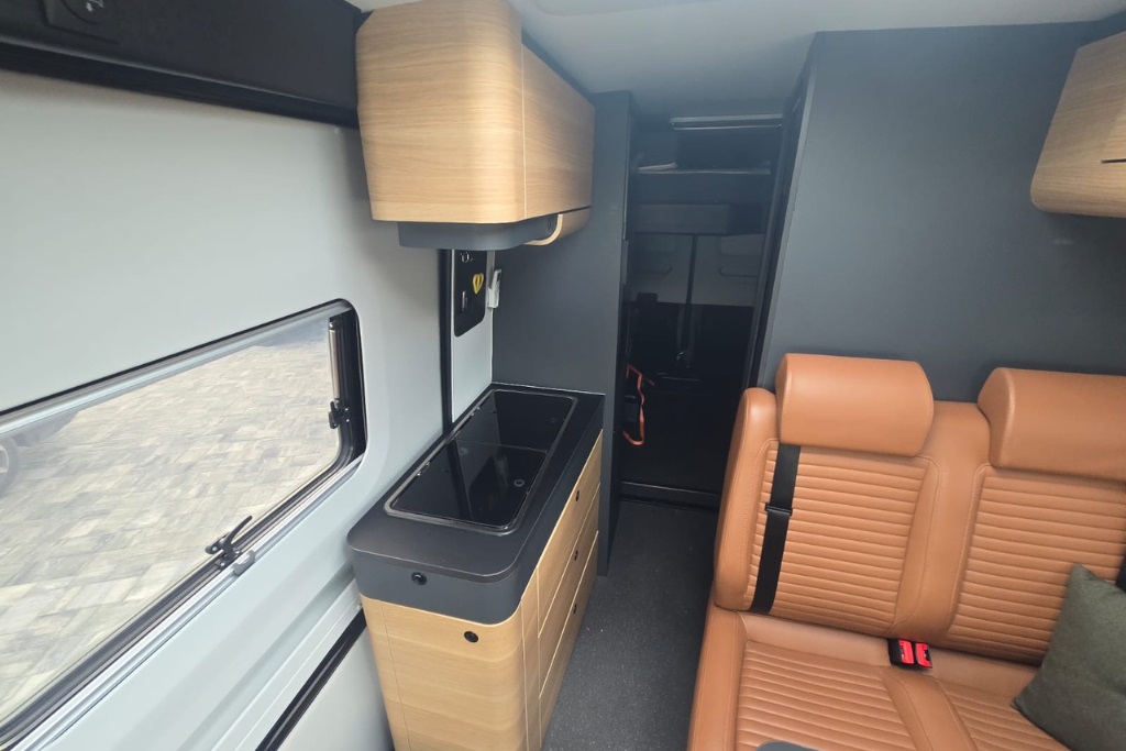 קרוואן זה מסדרת "מולטי וואן" מתאים לעד 2 מבוגרים ומגיע עם מיטה זוגיות מאחורה.