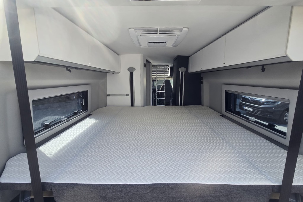 קרוואן זה מסדרת "מולטי וואן" עם גג נפתח, מתאים לעד 2 מבוגרים ו- 2 ילדים ומגיע עם מיטה זוגיות מאחורה ומיטה נפתחת בגג הקרוואן.