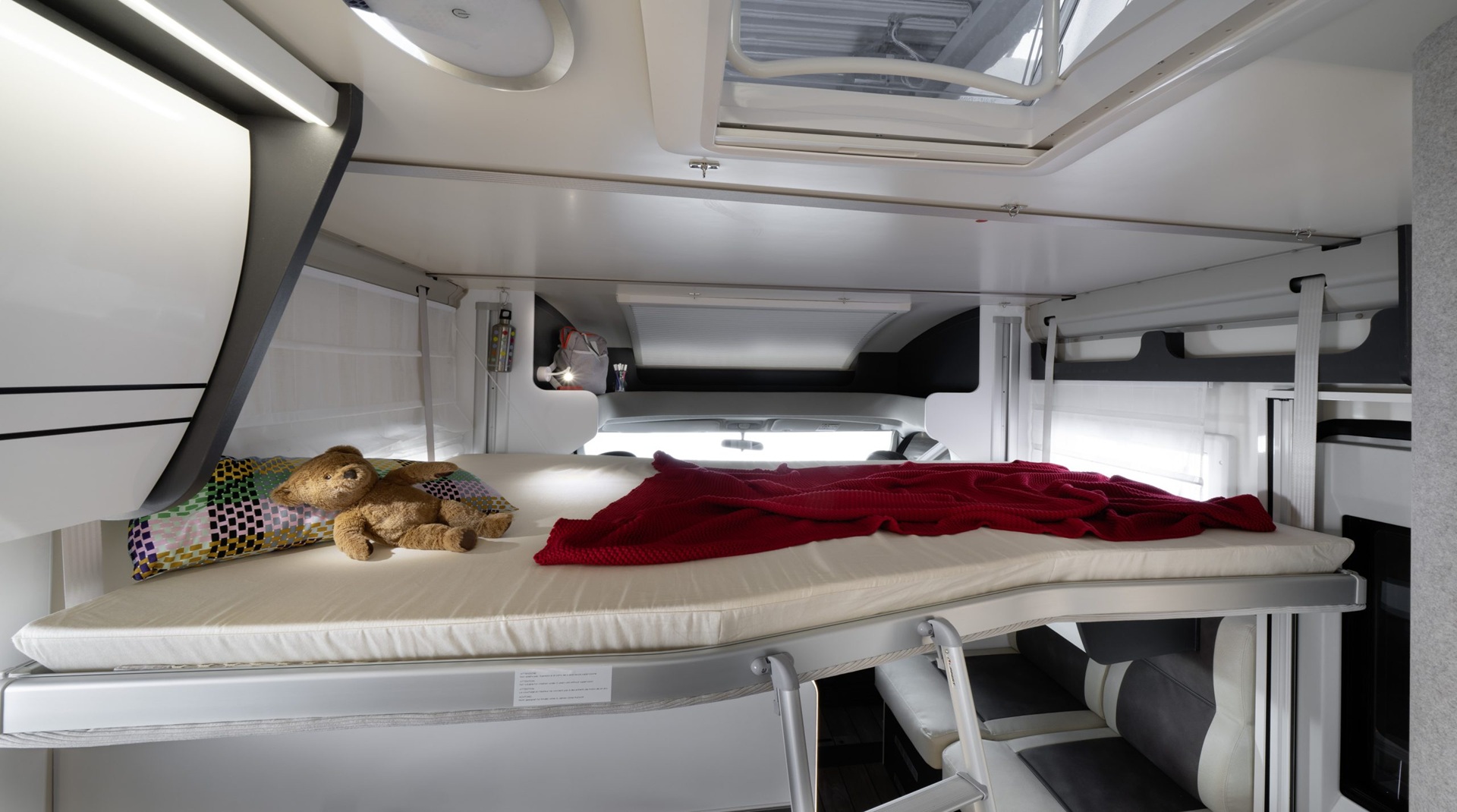 קרוואן זה מסדרת "משולב חלקי" מתאים לעד 4 מבוגרים. כולל מיטה זוגית אחורית, מיטה זוגית היורדת מעל פינת האוכל, פינת אוכל, מטבח, מקלחת ושירותים.