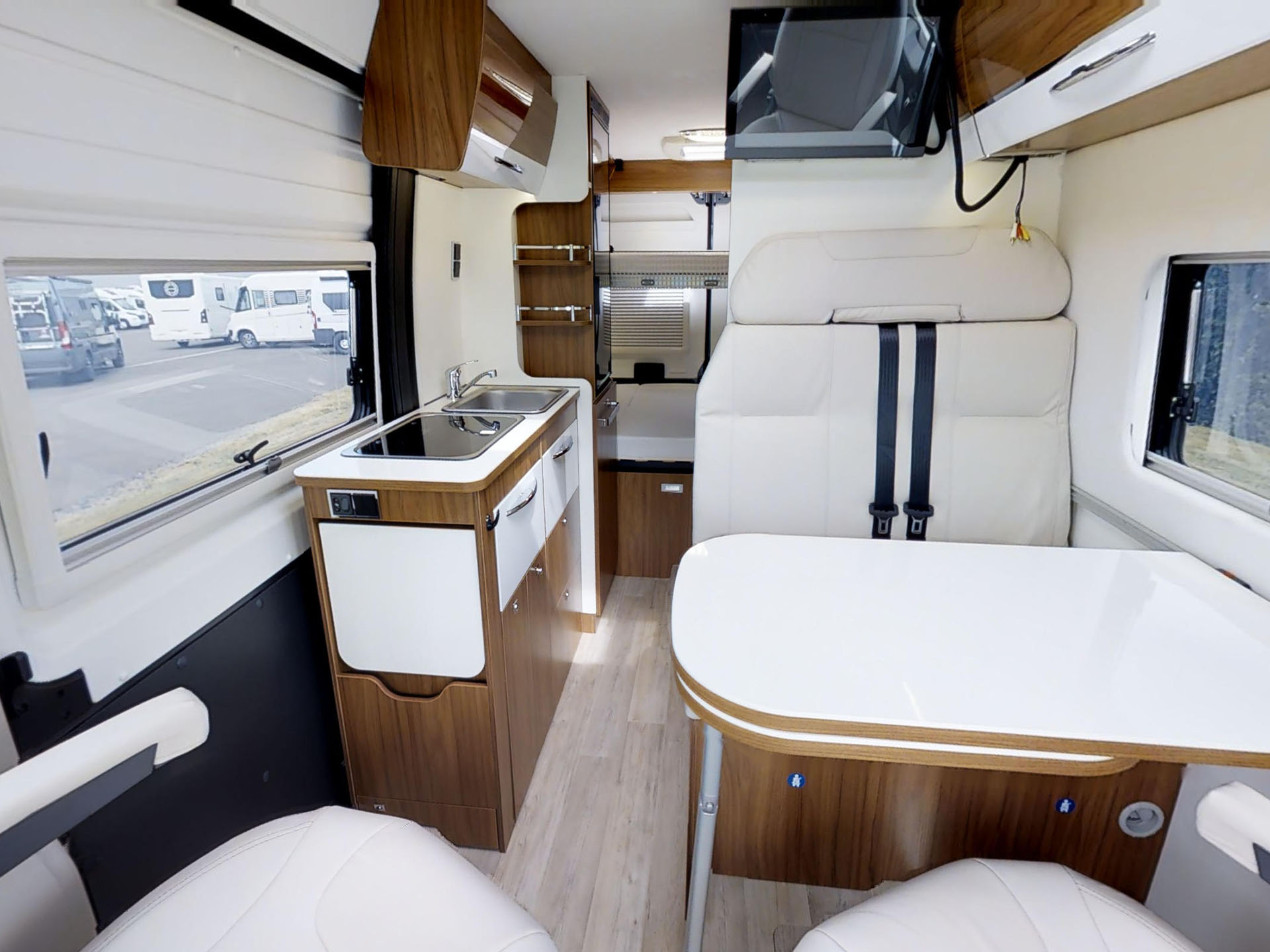 קרוואן זה מסדרת "וואן" מתאים ל- 2 מבוגרים ו 2 ילדים. כולל מיטה זוגית אחורית קבועה ומיטה זוגית יורדת מעל המיטה הזוגית האחורית, פינת אוכל, מטבח, שירותים ומקלחת.