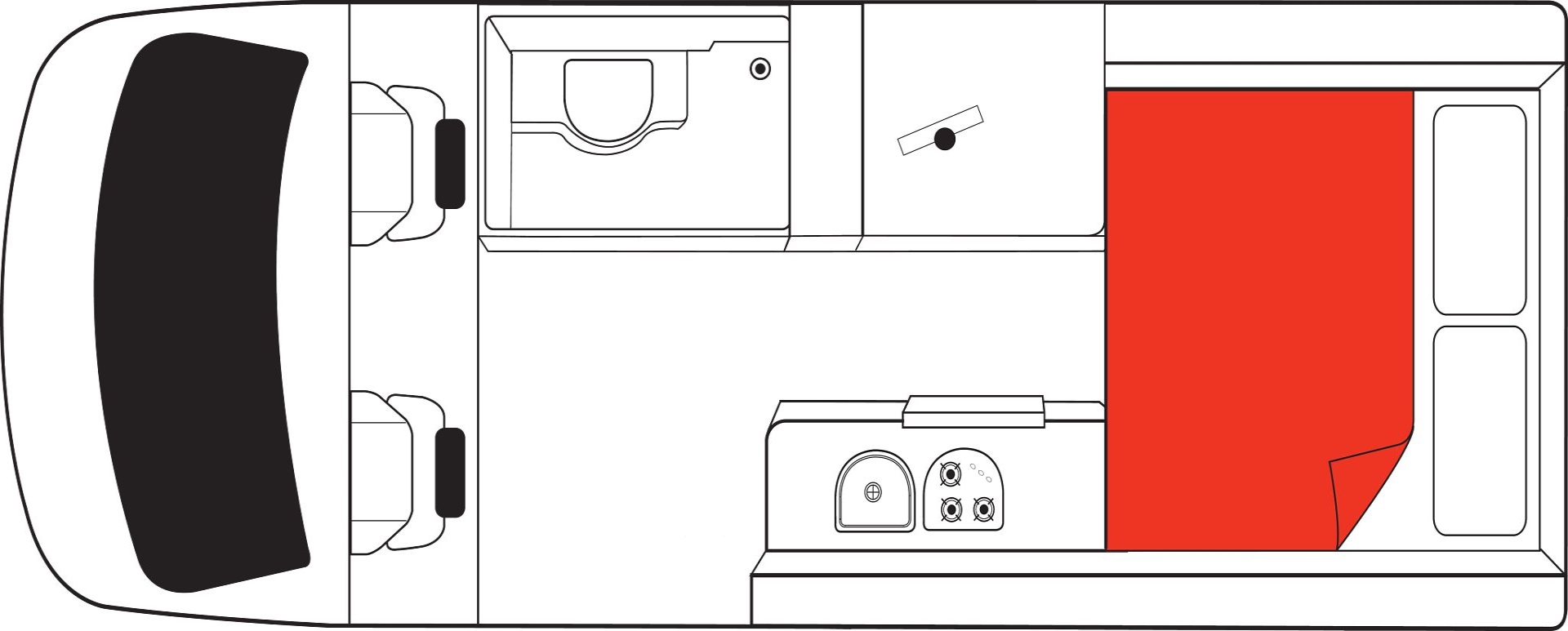 כולל מיטה זוגית או 2 מיטות יחיד (נפתח מפינת האוכל), מטבחון, פינת אוכל , מקלחת ושירותים. הקרוואן הוא בעל מערכת סגורה לנושא איכות הסביבה (Self Contained) וניתן לחנות איתם גם לא בחניונים מוסדרים והכל על פי הכללים וההנחיות.