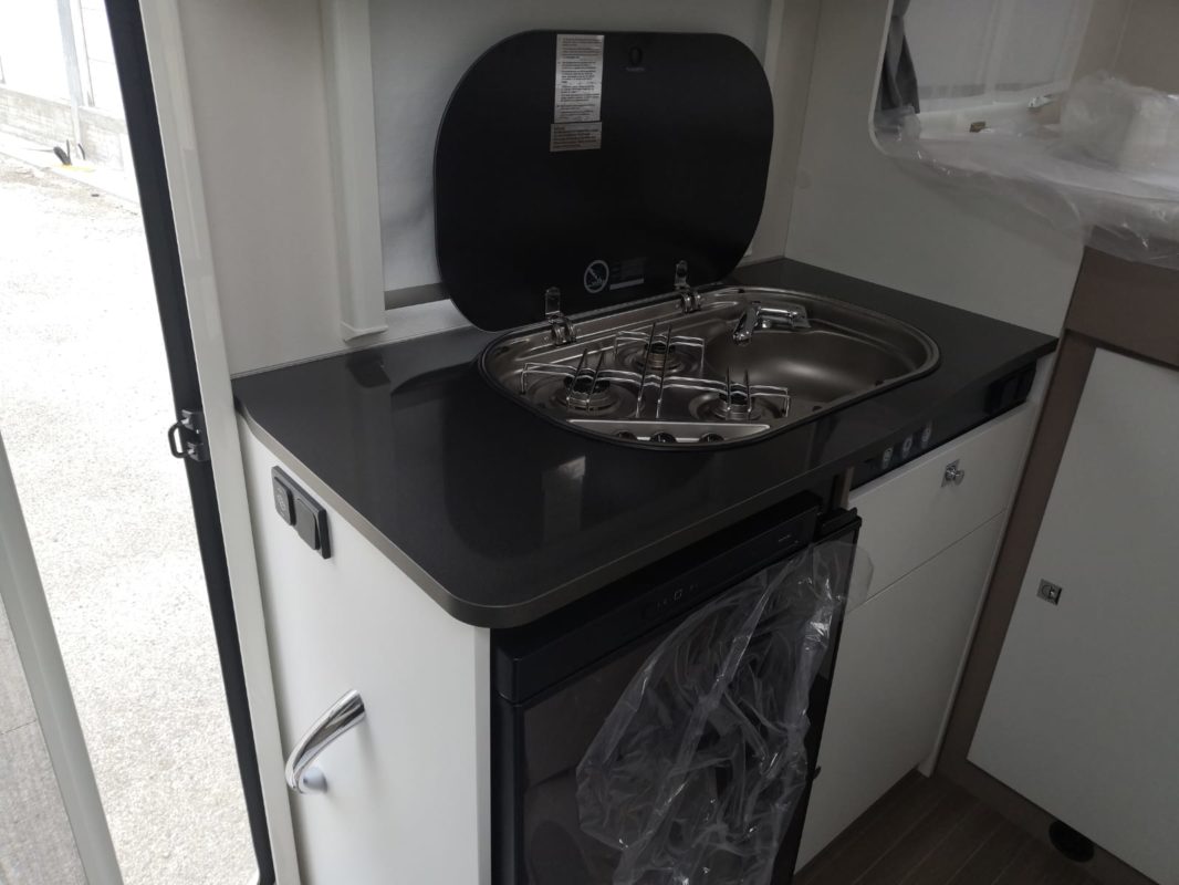 קרוואן זה מסדרת "משולב חלקי" מתאים ל-2 מבוגרים. כולל מיטה זוגית אחורית קבועה, מטבח, פינת אוכל, מקלחת ושירותים.